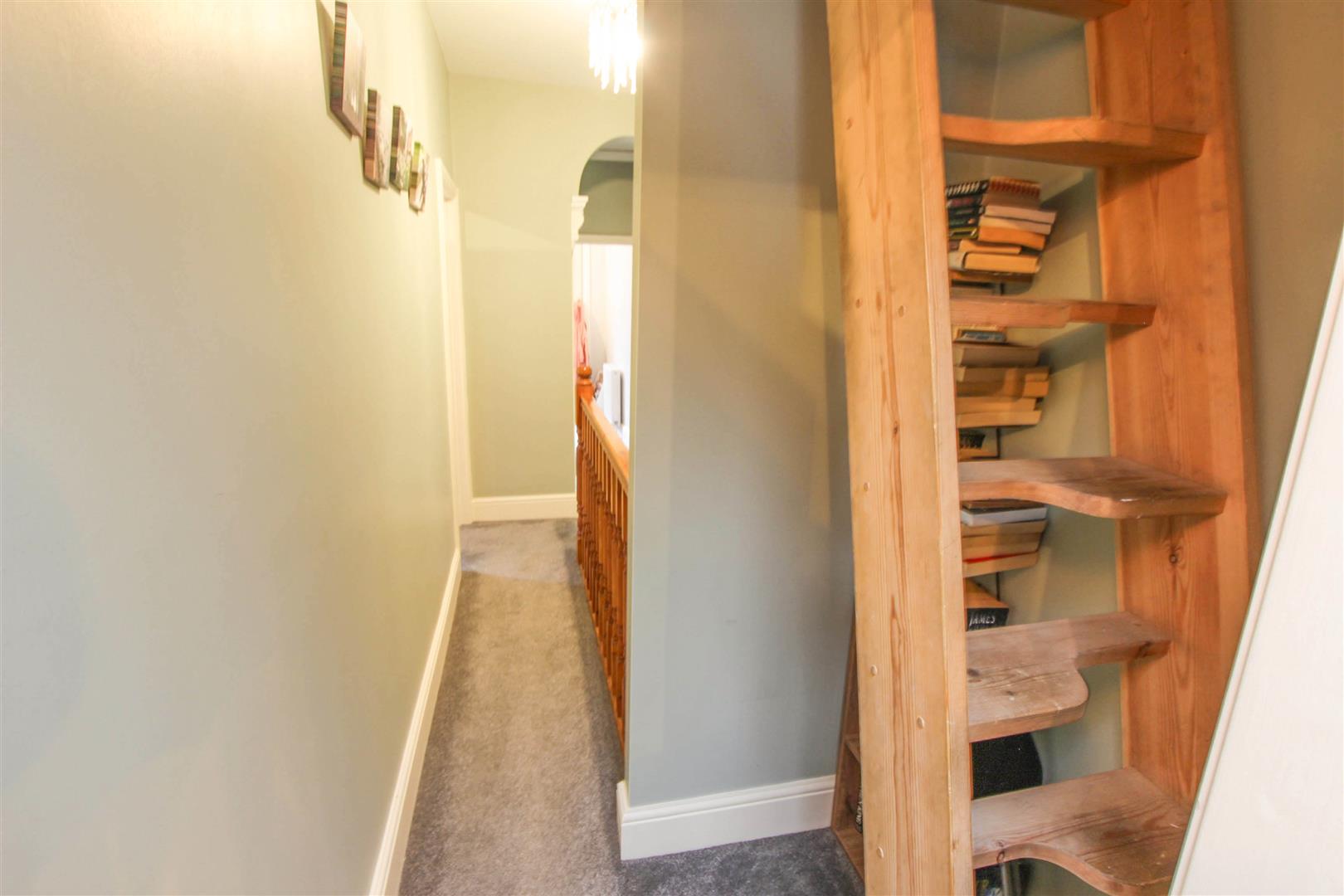 This has a spindle banister rail, an access via an alternate tread staircase which leads up into a boarded and lined storage attic.