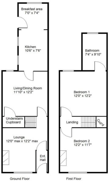 This has a PVC double glazed window to the front, two double panelled central heating radiators, a wall mounted electric fire and a vinyl floor covering. From the inner lobby a staircase leads to the first floor accommodation and a door into a separate living/dining room.