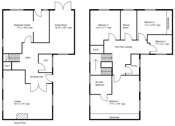 Bedroom 1 5.36m x 5.33m max (17'7" x 17'6" max )
