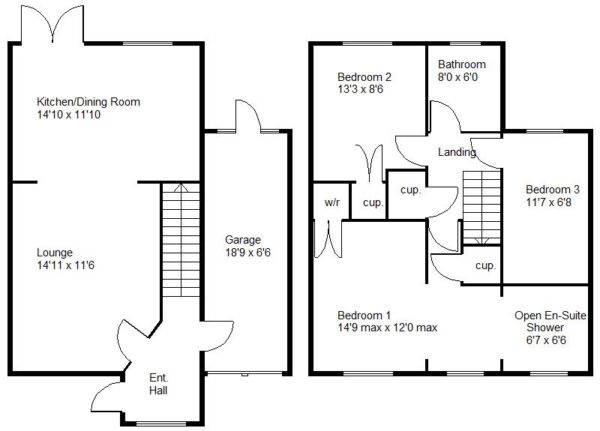 BEDROOM 1 4.27m max x 3.66m max (14'0" max x 12'0" max)