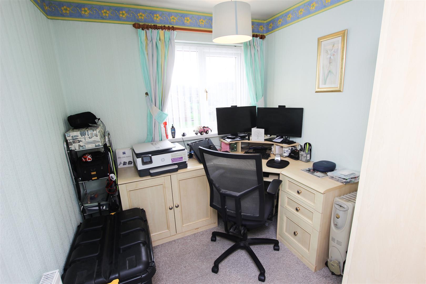 A comfortable sized bedroom, it has a PVC double glazed window to the front, central heating radiator, ceiling light. presently fitted out with office furniture.