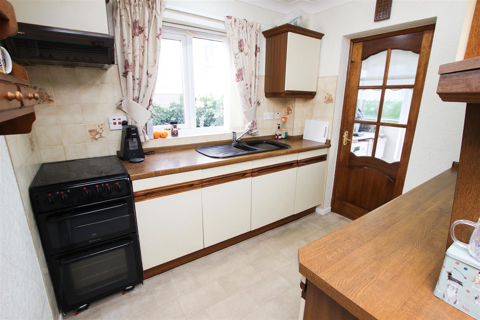 The kitchen area is fitted with a range of high and low level units finished with a roll edge work surface, there is tiled splashbacks, A one and half bowl composite style sink with mixer tap, a recess suitable for an electric cooker, a further recess suitable for an under counter fridge. PVC double glazed window, central heating radiator. Within the dining area there is a broad PVC double glazed window with an outlook over the rear garden, a further double panelled central heating radiator, central ceiling light and coving to the ceiling.