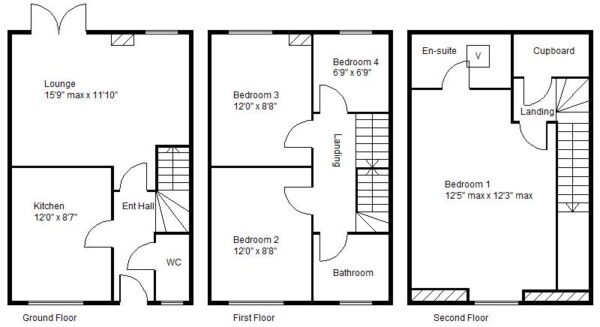 BEDROOM 1 3.78m max x 3.73m max (12'5" max x 12'3" max)
