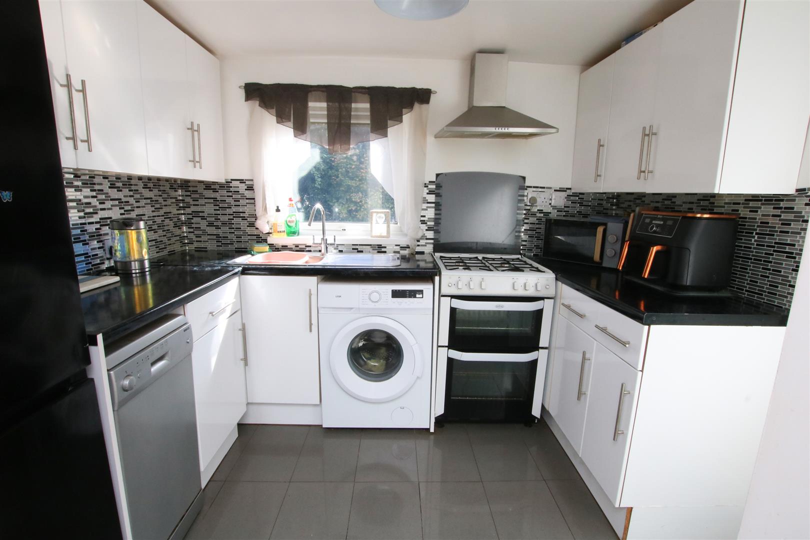 This is fitted with a range of high and low level units finished with a rolled edge work surface, there is a recess suitable for a gas cooker, plumbing for an automatic washing machine, room for a slimline dishwasher and a tall fridge/freezer. There is a tiled floor covering, central heating radiator, pvc double glazed window to the rear and a further pvc double glazed door which gives access to the side.
