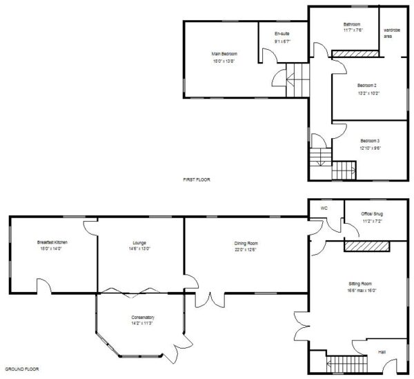 The main entrance to the house is on the East elevation. A decorative brick arched entrance into the hall, which continues through to a large sitting room with a feature fireplace, log burner and beams and creates a cosy relaxing space, a beautiful winters evening retreat. From here a small lobby leads to a large more formal dining room with bespoke panelling. A separate bright lounge which ingeniously opens courtesy of a wall of German glass āturn & slideā doors into a conservatory with an outlook over the gardens. The breakfast kitchen was fully fitted by a bespoke Derbyshire firm, hand crafted with high quality cabinets, finished with Quartz/ granite work surfaces including a feature 4 oven Aga, and many other integrated appliances. There is a home office or snug and a ground floor wc. On the first floor, a long landing gives access to a large main bedroom suite which includes a contemporary en-suite shower room. There are 2 additional large double bedrooms and a large 4 piece bathroom. Outside, a walk through the garden will not fail to impress, full of interest and colour with enough tree cover to offer privacy and a shaded spot or two. A large patio offers a place to entertain with a beautiful vantage point overlooking the garden, plus a few additional tucked away spaces too.
