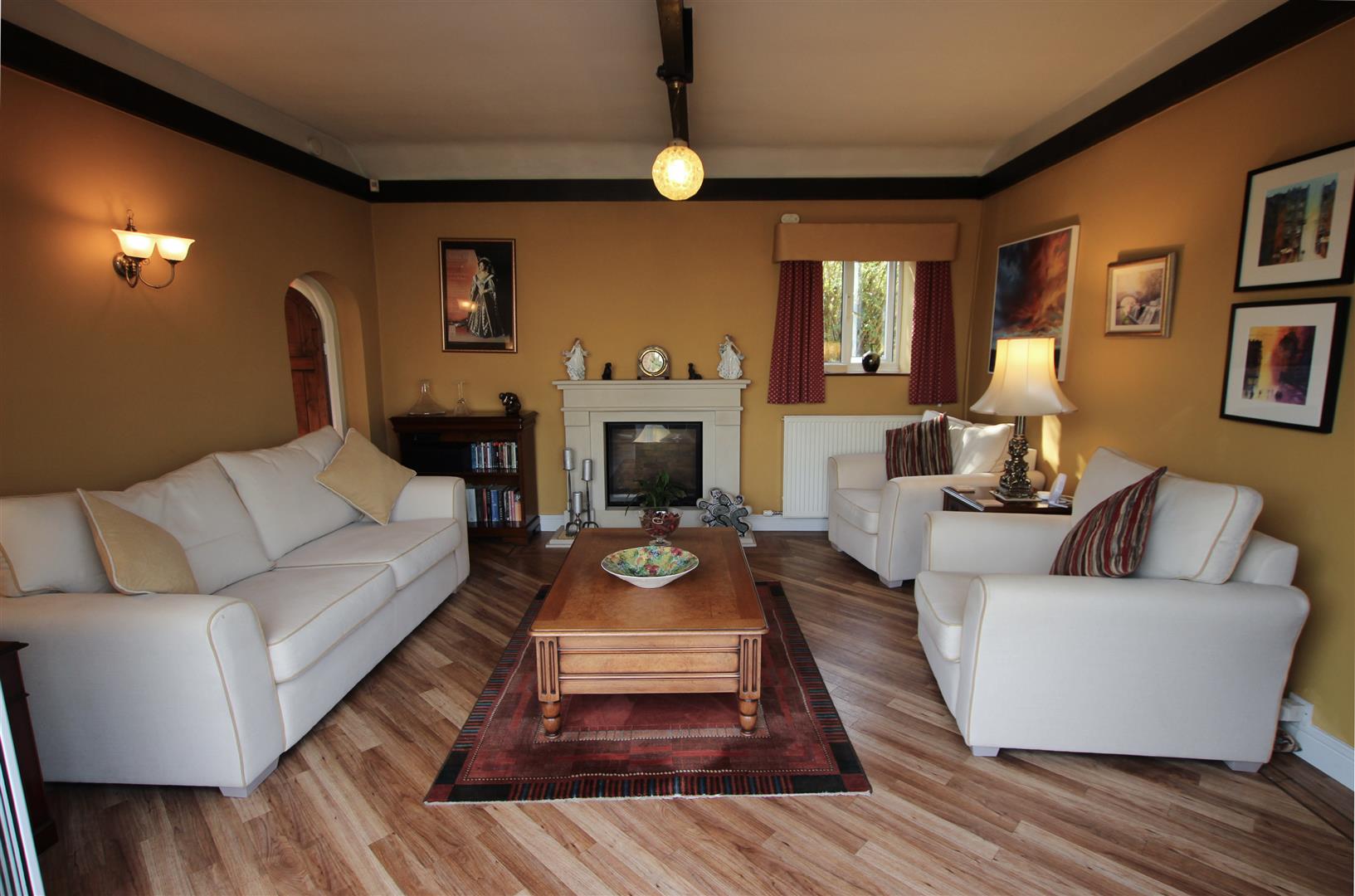 This has a Yorkshire sliding sash window to the side and further double glazed window to the front, a double panel central heating radiator, central ceiling light, ornamental beams and an arched interior door which leads into a beautiful sitting room.