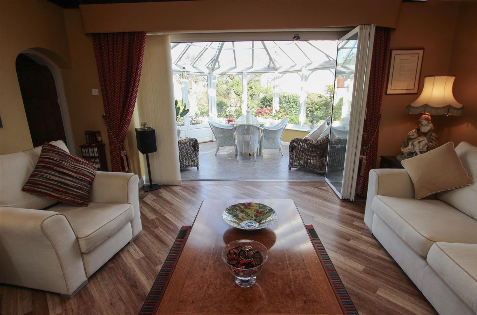 A beautiful bright sitting area with an uninterrupted view of the garden, it is finished with double glazing, including a pitched glass roof with feature lighting, central heating radiators and Amtico LVT flooring.