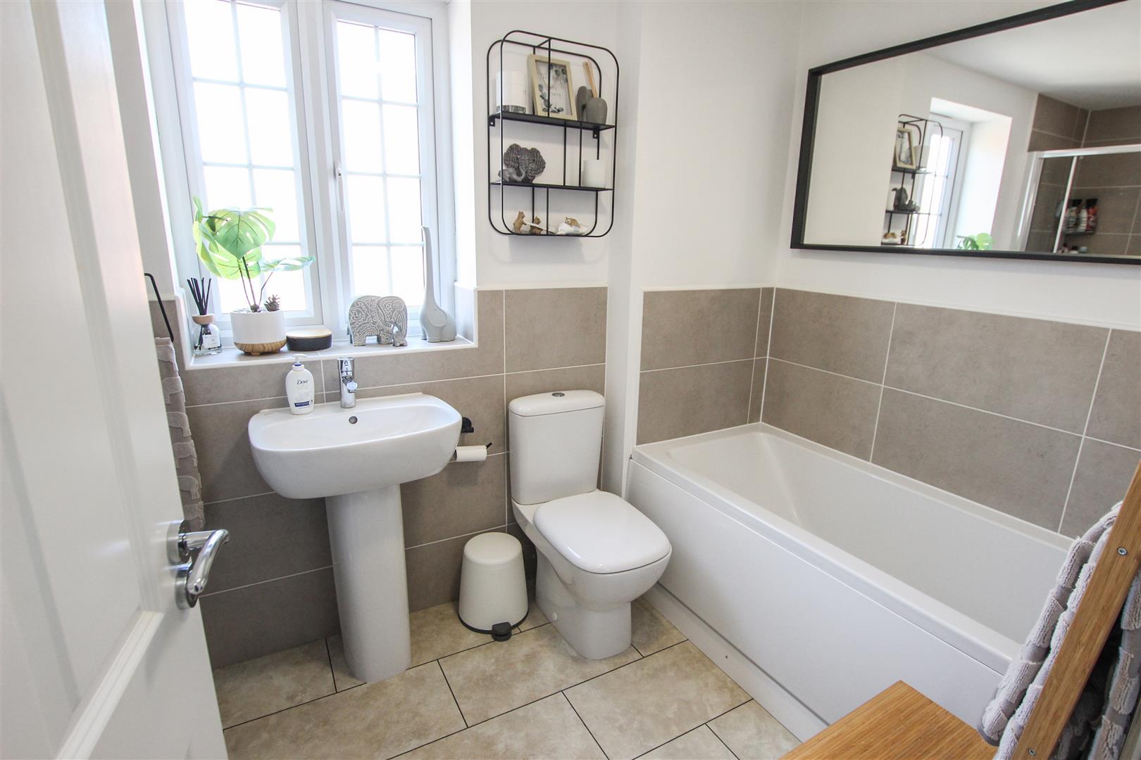 This is fitted with a modern 4 piece white suite that comprises of a panelled bath with tiling, a pedestal wash hand basin, a low flush wc and a separate shower enclosure. There is a mains plumbed thermostatic shower, a pvc double glazed window, coordinating vinyl floor tiles, contemporary style towel rail/radiator, extractor fan and a ceiling light.