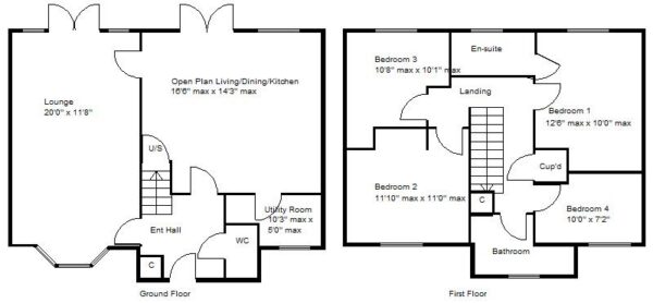 BEDROOM 1 3.81m max x 3.05m max (12'6" max x 10'0" max)