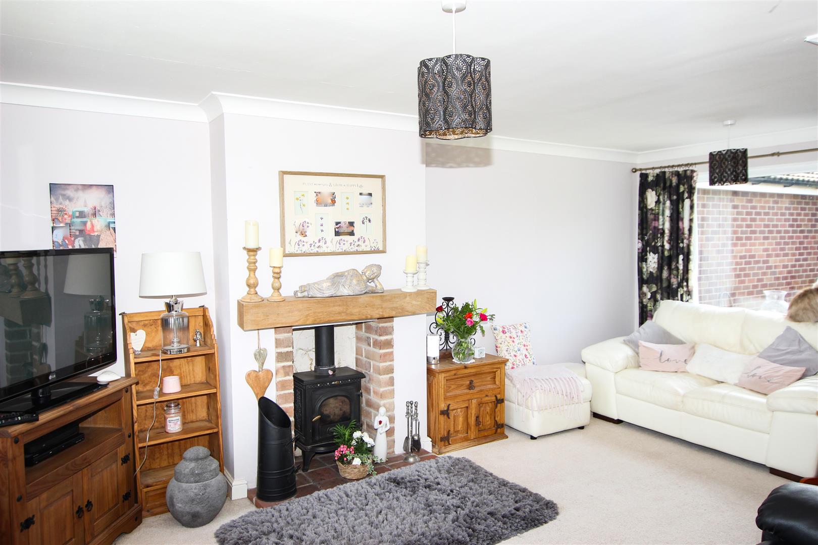 This is a good size room with a dual aspect, pvc double glazed windows to both front and rear, there is a log burner set in an inglenook recess style fire surround with a wooden mantel piece over, two central heating radiators and two central ceiling lights.