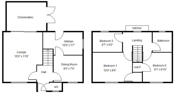 BEDROOM 1 3.66m x 2.59m (12'0" x 8'6")