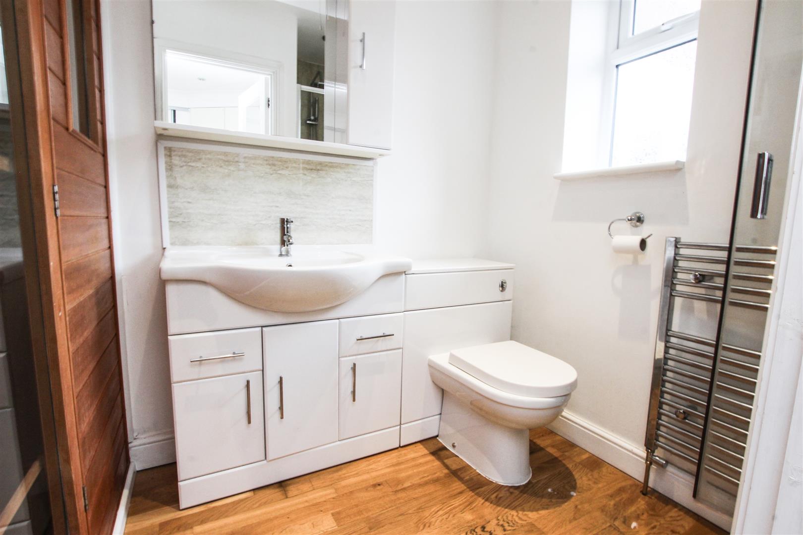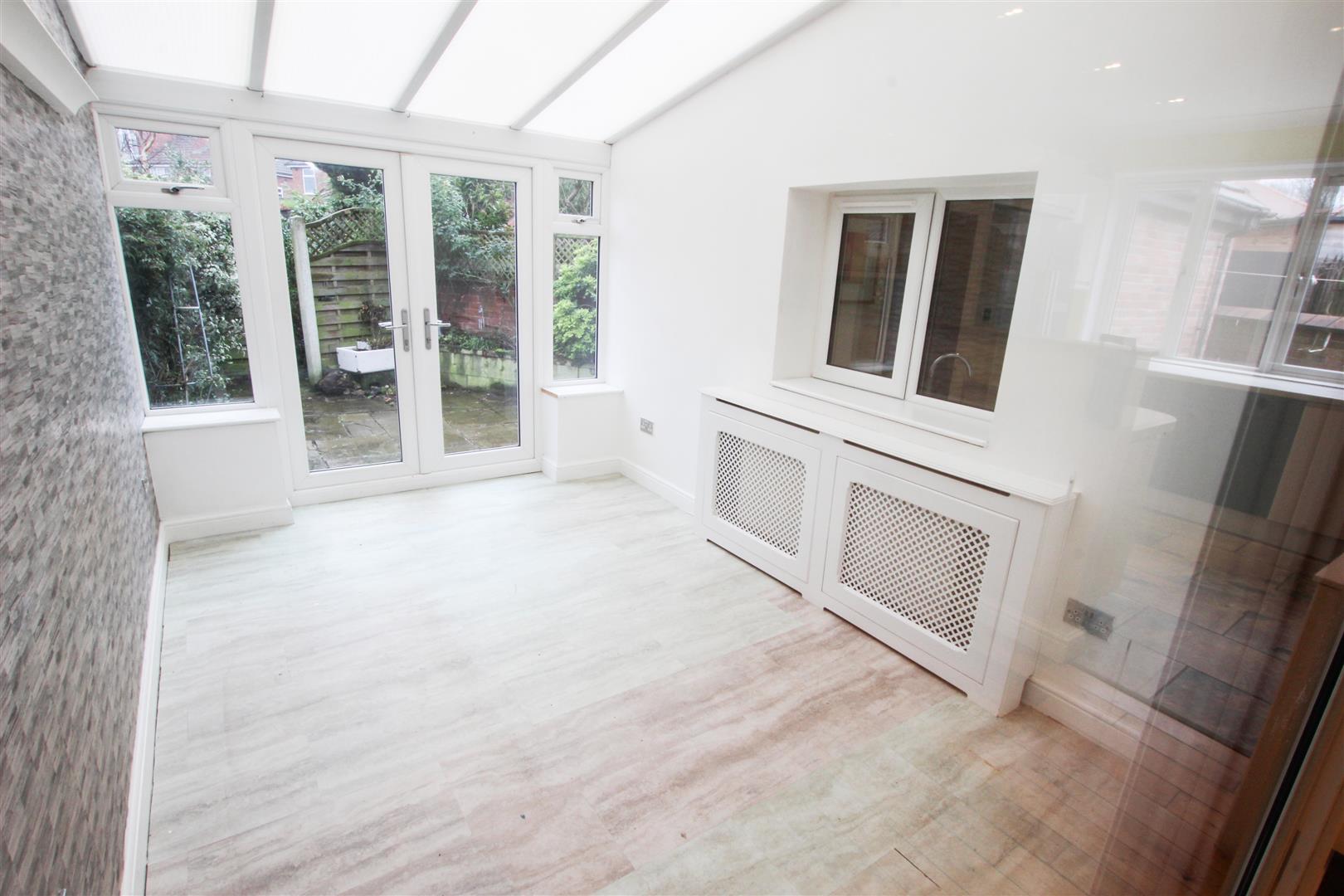 This gives access into the rear garden, it has a radiator behind a decorative cover and laminate flooring.