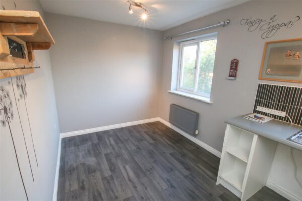 This has a PVC double glazed window to the rear with a fitted roller blind, a continuation of the laminate flooring, a central heating radiator and a central ceiling light fitment.