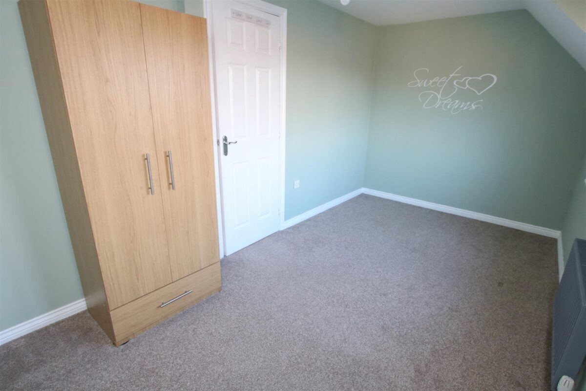 A good sized second double bedroom, there is a PVC double glazed window to the rear with fitted roller blinds, a beige coloured fitted carpet, a central heating radiator, a ceiling light and a double wardrobe.