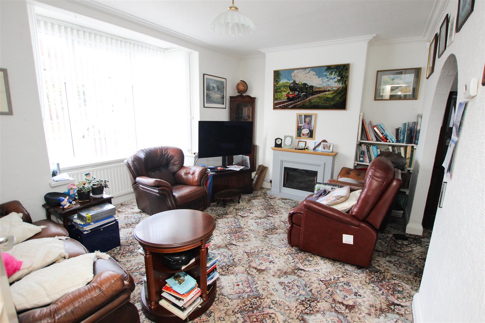 An attractive front facing reception room which has a broad pvc double glazed bay window to the front, feature fireplace with an electric fire inset, central heating radiator, ornate cornicing, central ceiling light and a broad opening into the dining area.