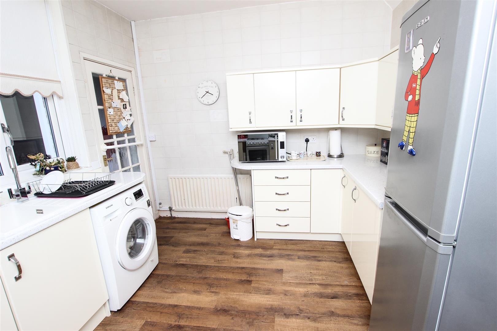 This is fitted with a range of high and low level units finished with a cream coloured high gloss cabinet door with a contrasting roll edge work surface. There is a composite style sink with a contemporary mixer tap, a deep recess suitable for a gas cooker, plumbing for an automatic washing machine, continuation of the LVT flooring, ceiling light, pvc double glazed window, central heating radiator and door to rear lobby.