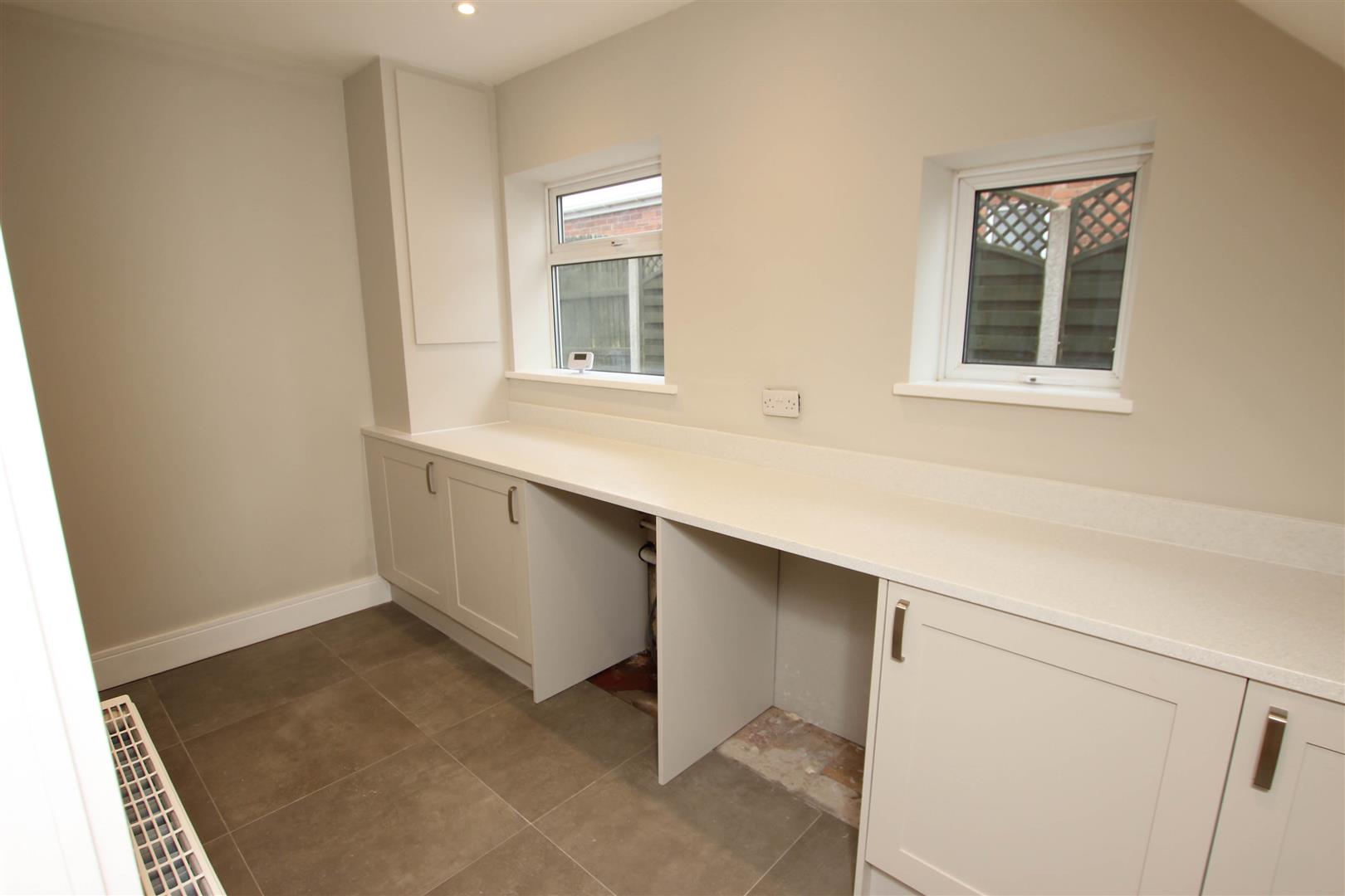 A particularly good size (as evidenced by the room measurements), there is a feature media wall, pvc double glazed window, 2 double panel central heating radiators, LVT flooring throughout and inset spot lighting to the ceiling. A broad opening continues through into a contemporary island kitchen.