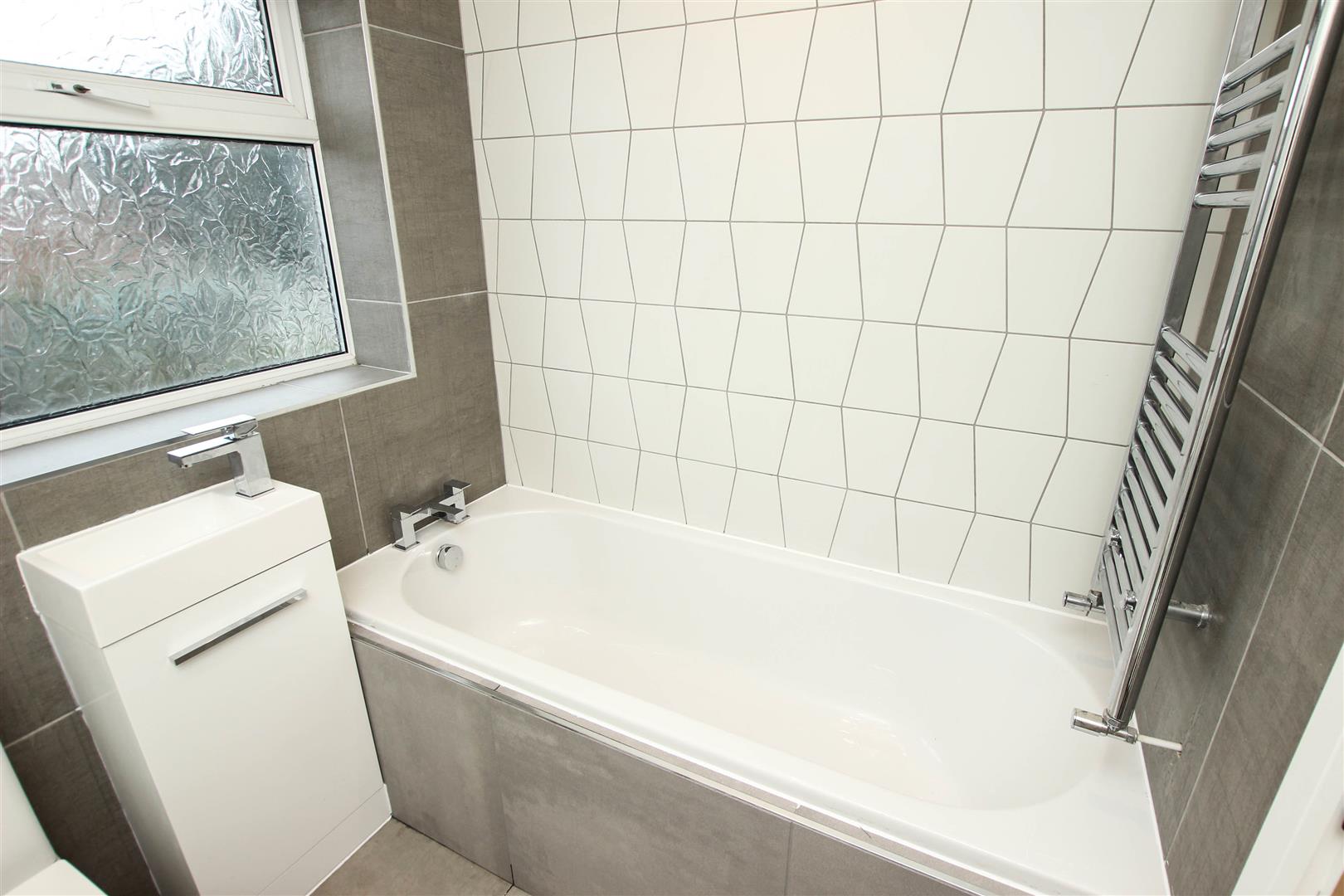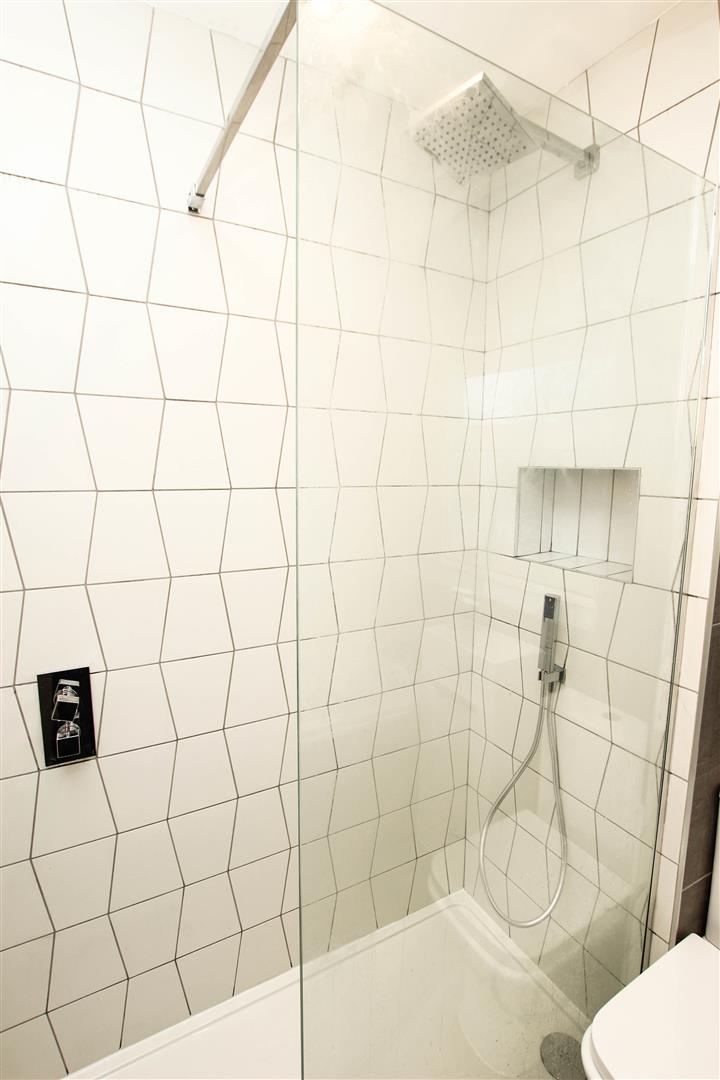 All beautifully finished with a modern new white suite that comprises of a panelled bath, separate walk-in shower enclosure, low flush wc and wash hand basin. There is a contemporary style towel rail/radiator, feature tiling to the walls and coordinating floor tile, a pvc double glazed window, inset spot lighting to the ceiling, extractor fan and a contemporary style chrome towel rail/radiator.