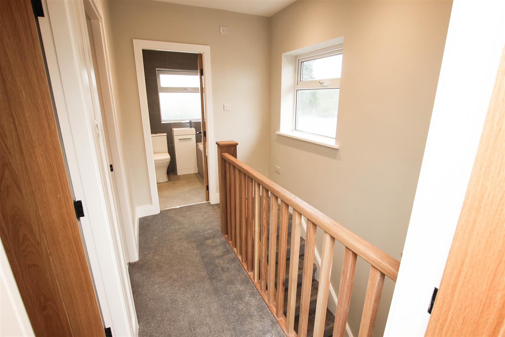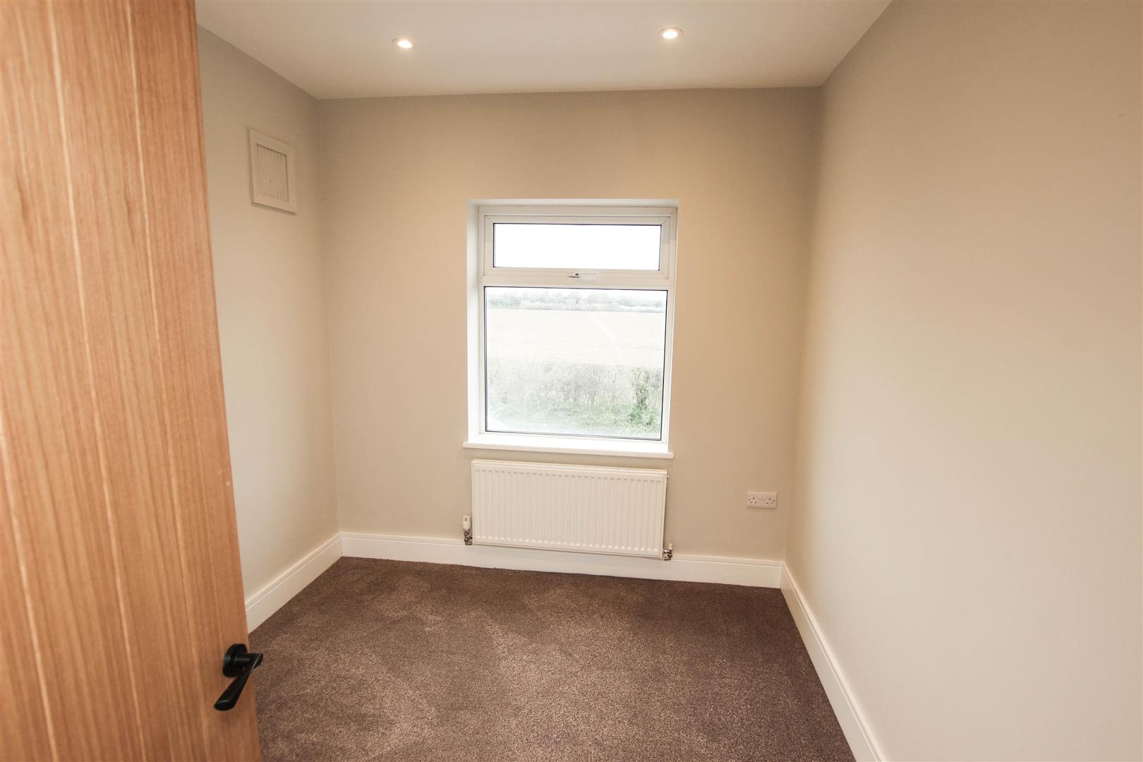 There is a pvc double glazed window to the side, an access point into the loft space, inset spot lighting to the ceiling and doors to the bedrooms and bathroom.