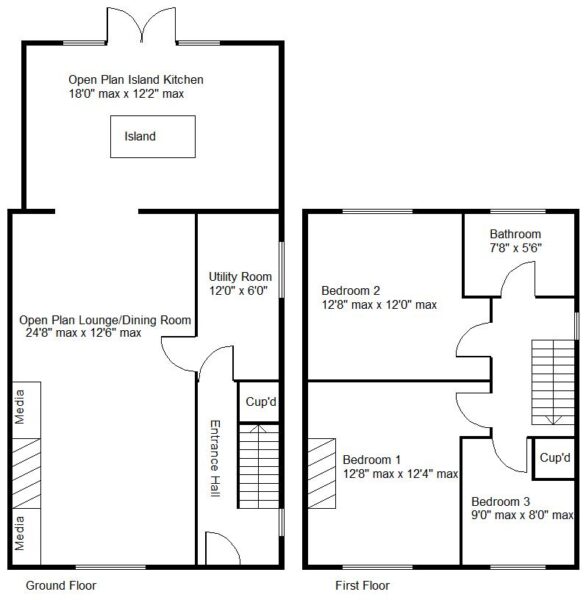 BEDROOM 1 3.86m max x 3.76m max (12'8" max x 12'4" max)