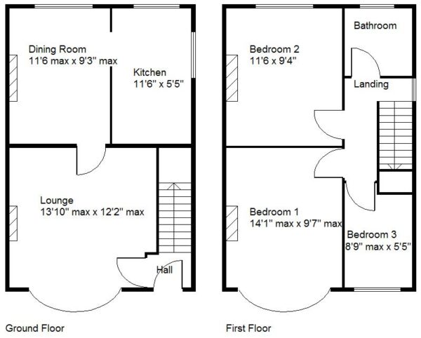 BEDROOM 1 4.29m max x 2.92m max (14'1" max x 9'7" max)