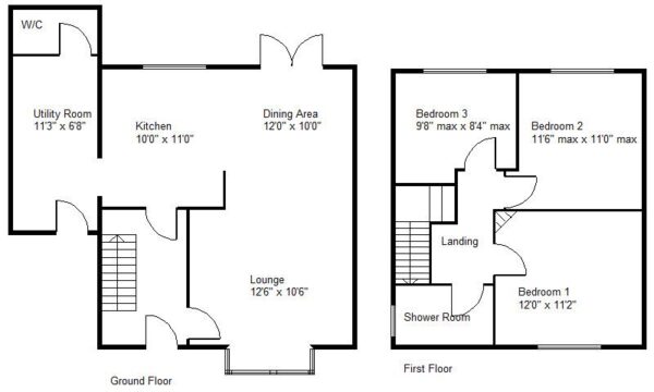 BEDROOM 2 3.51m max x 3.35m (11'6" max x 11'0")