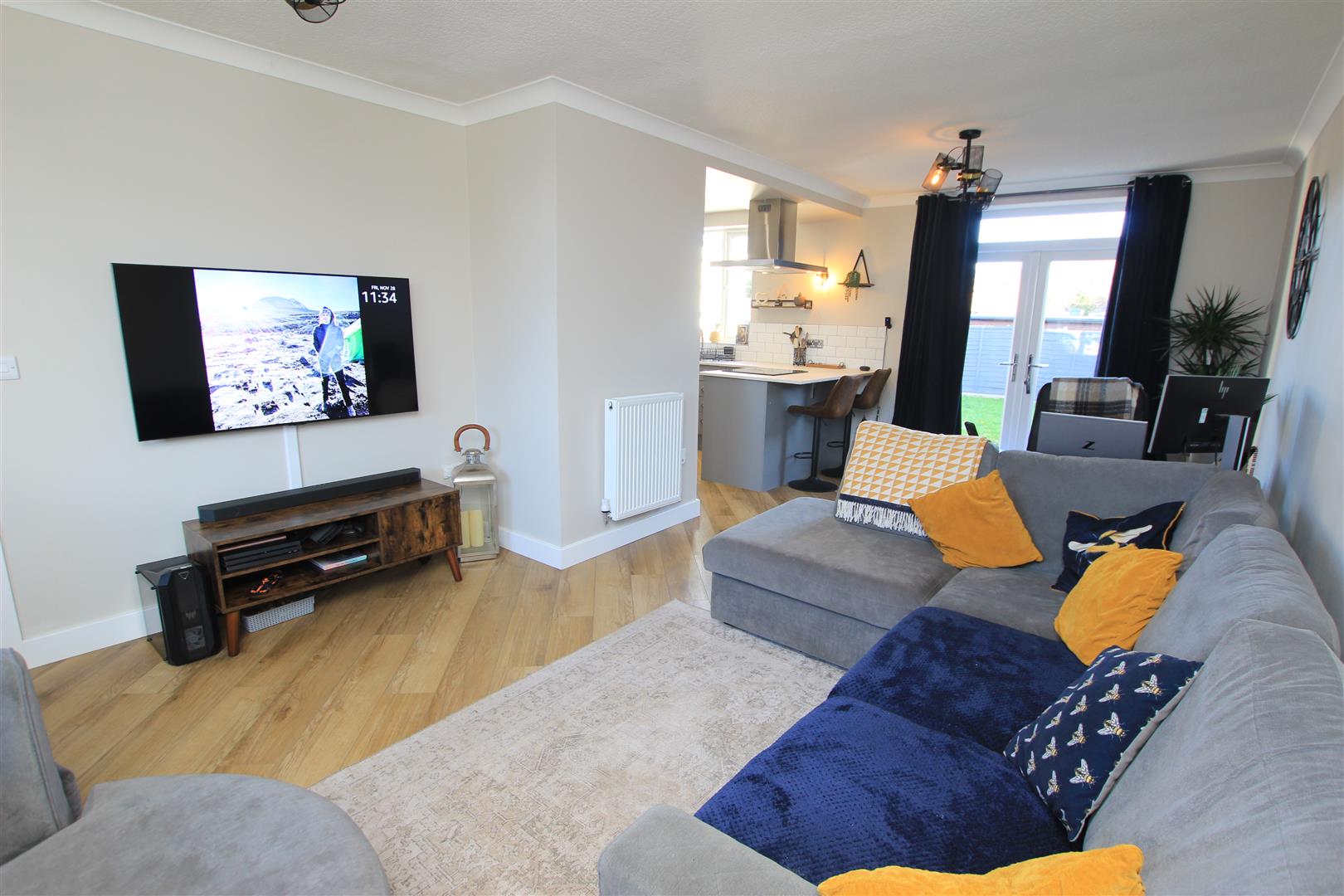 To the far end there are PVC double glazed double opening doors that lead out on to the rear garden, a continuation of the laminate flooring and a peninsula style breakfast bar creates a room divide.