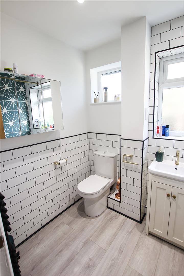 This has a white suite comprising of a low flush wc, wash hand basin, central heating radiator, tiled flooring, a pvc double glazed window and an extractor fan. There is also a wall mounted gas fired combination type boiler which supplies the domestic hot water and central heating systems.
