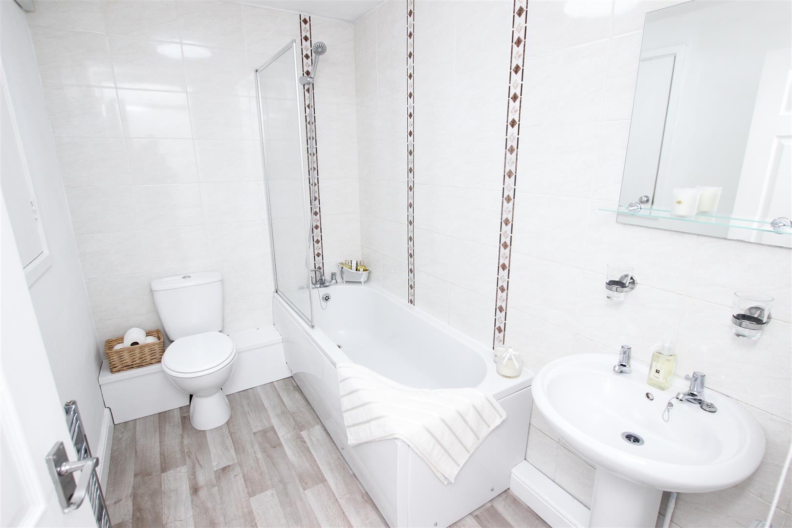 This is fitted with a modern white suite that comprises of a panel bath with mixer shower over, a pedestal wash hand basin and a low flush wc. There is modern tiling to the splahsbacks and bathing areas, central heating radiator/towel rail, newly laid vinyl flooring, ceiling light, built-in storage cupboard with shelving, wall mirror and ceiling light.