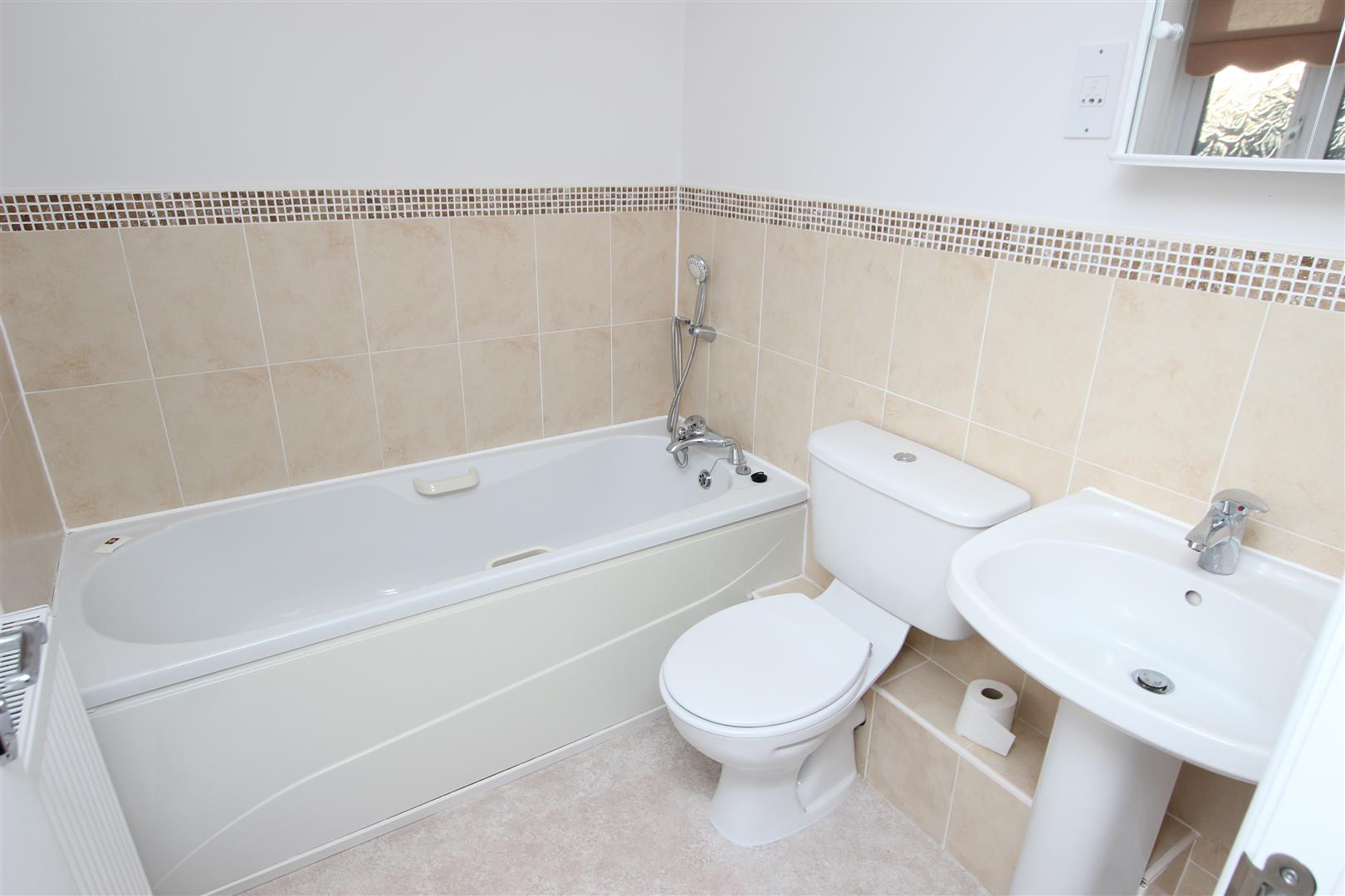 This is fitted with a 3 piece white suite comprising of a panelled bath with a shower mixer over, pedestal wash hand basin and a low flush wc. There is ceramic tiling to the splashbacks and bathing areas, central heating radiator, vinyl flooring, ceiling light, extractor fan and a pvc double glazed window.