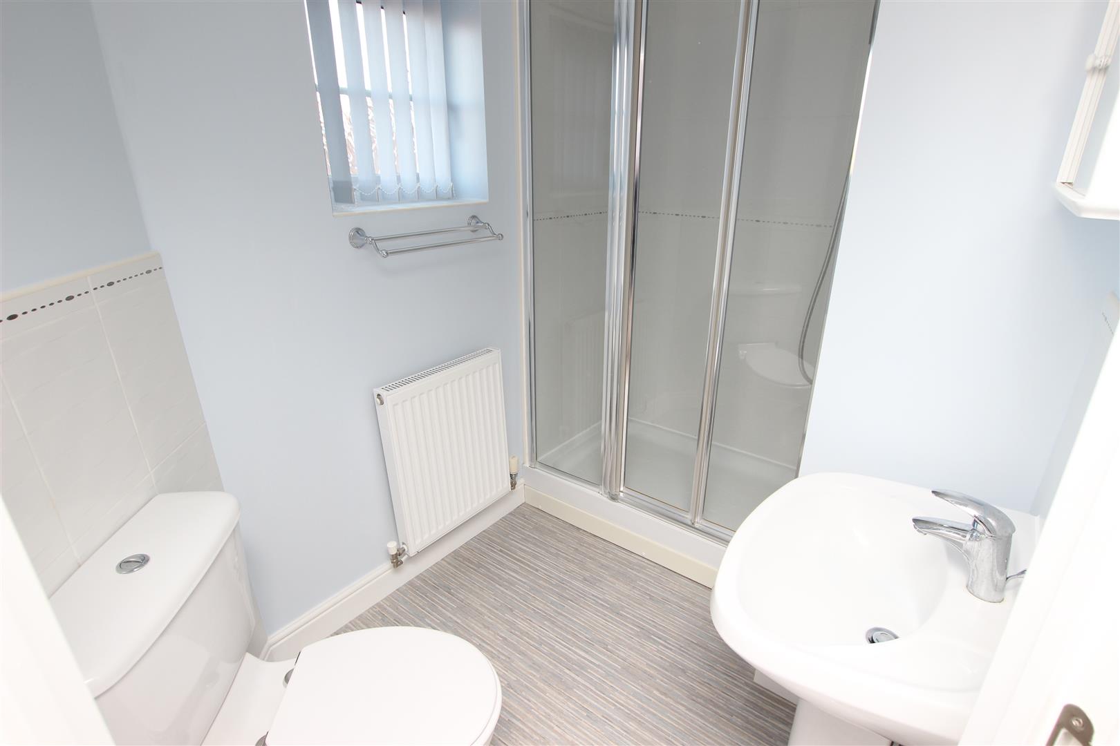 This is all smartly finished with a modern white suite that comprises of a shower enclosure, wash basin and low flush wc, central heating radiator, vinyl flooring, extractor fan and a ceiling light.