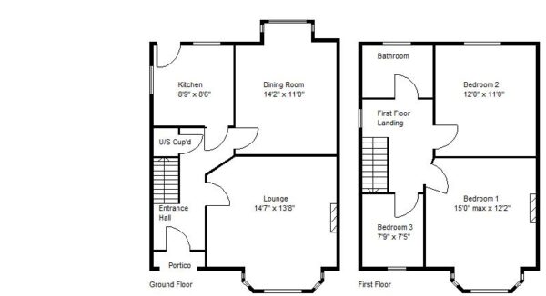 This is an attractive and very good sized reception room, it has a deep pvc double glazed bay window to the front, a feature fireplace with an electric fire inset, 2 central heating radiators, coving and a ceiling light.