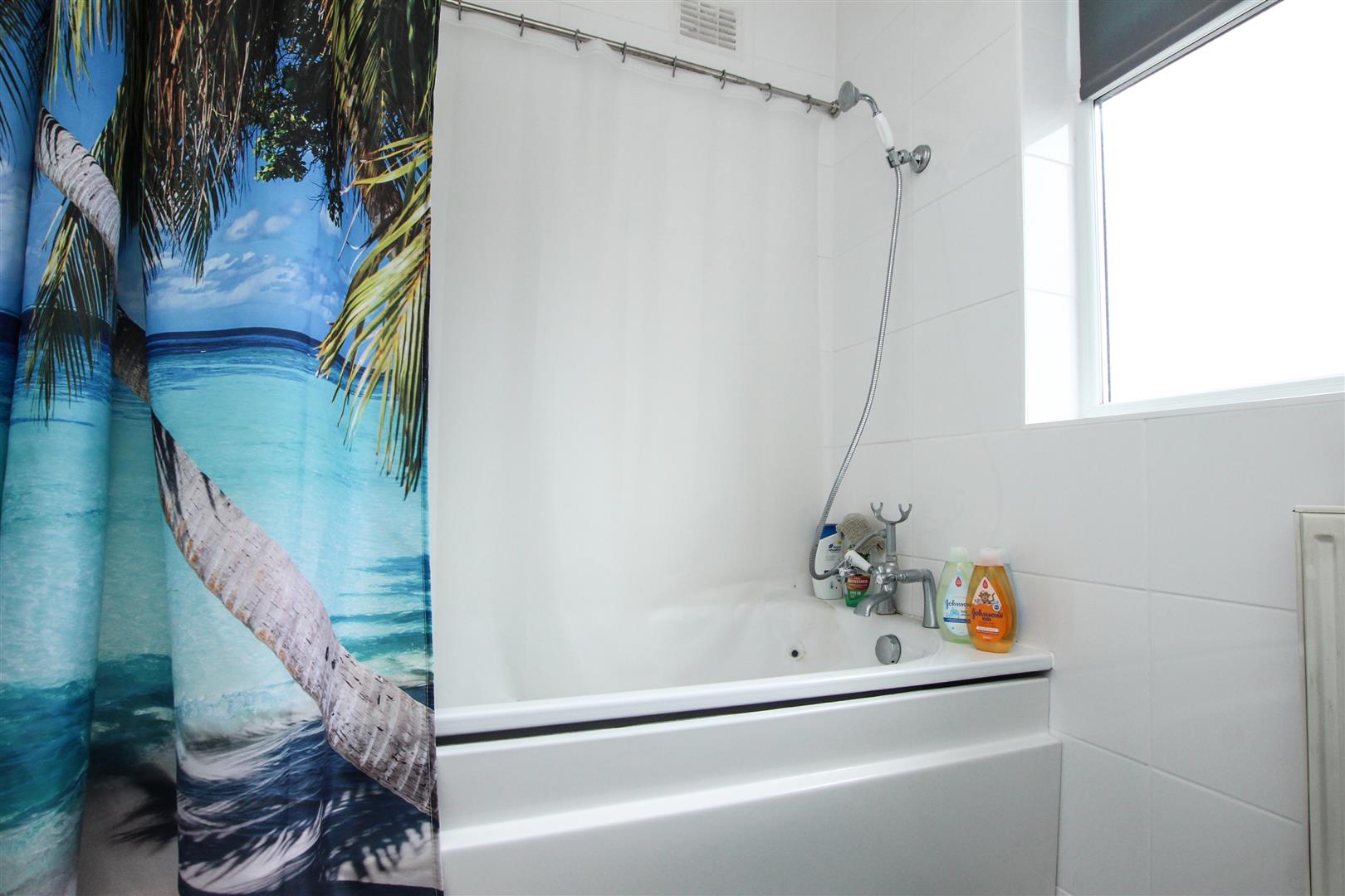 The bathroom is fitted with a white suite that comprises of a panelled bath with mixer shower over including a shower rail, a wash hand basin and a low flush wc built into modern bathroom furniture. High level mirrored cabinet, feature spotlighting, tiling to the four walls, pvc double glazed window, central heating radiator, vinyl flooring and a ceiling light.